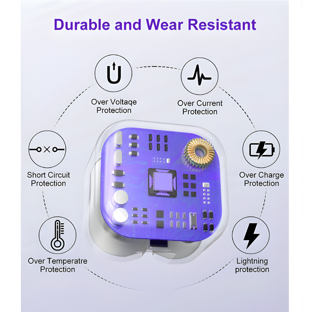Includes a durable 1M braided cable, designed to resist wear and bending—similar feel and quality to Apple’s braided cables, offering long-lasting performance and secure charging.