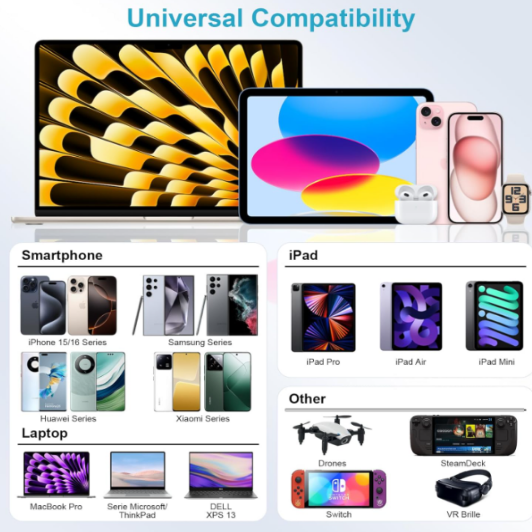 - 100W Variant – Perfect for high-power devices such as MacBook, Samsung S25 Ultra, iPad Pro, Steam Deck, etc.